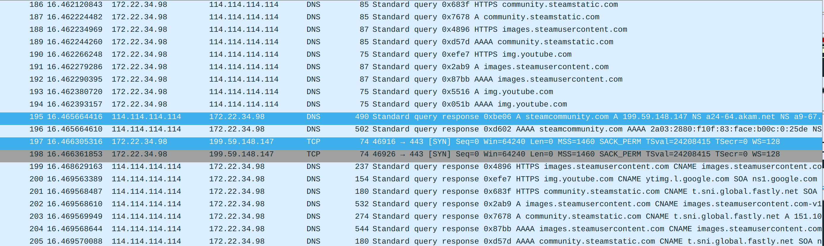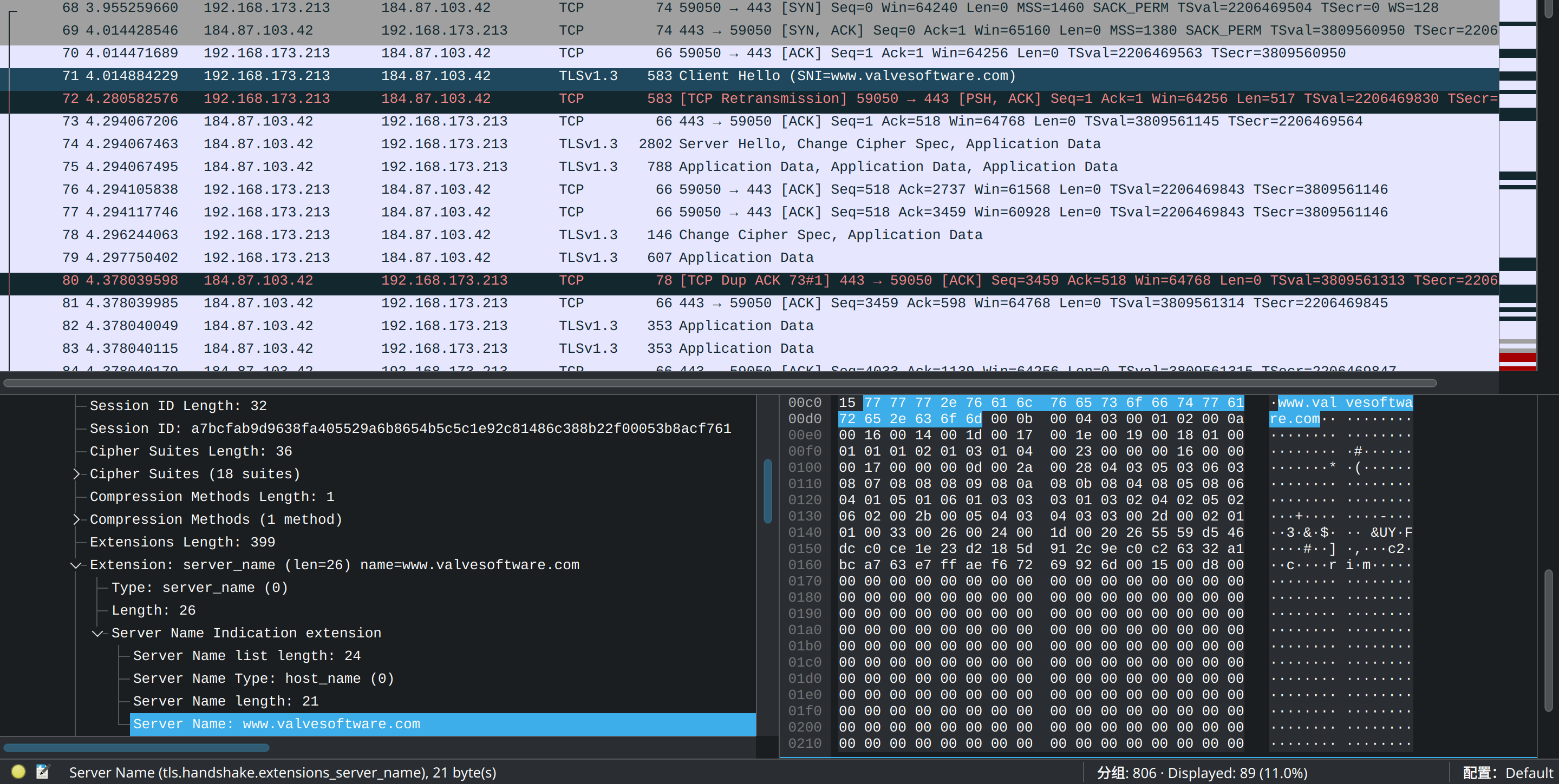 这里还是以steamcommunity.com为例子,使用Wireshark进行抓包分析
